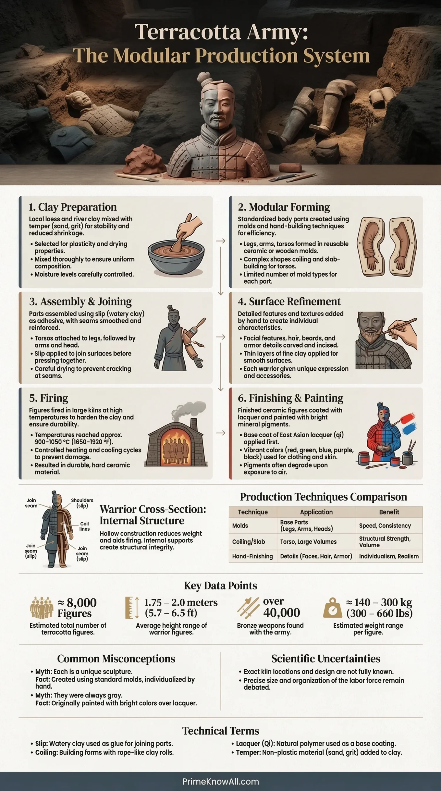 When people ask how these figures were made, they often picture a single sculptor carving each warrior start to finish. The evidence points to something more practical: organized workshops using standard molds, hand-building, and careful finishing so the army looks varied while still staying consistent.