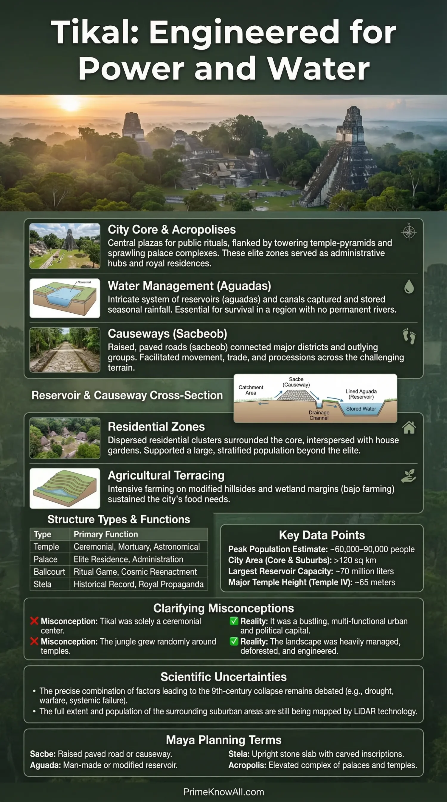 If you remember one thing, remember this: Tikal was planned from the ground up to manage water, movement, and authority together. The temples matter, but the city only comes into focus when the reservoirs, plazas, causeways, and residential groups are read as one system.